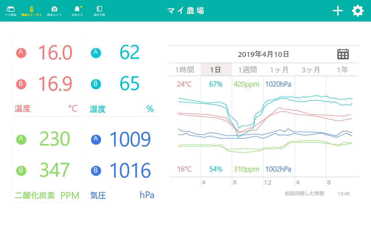 温度・湿度・二酸化炭素やその他の数値を入力することにより得られる情報をシステム内で分析し、農場・栽培管理に活用することができます。