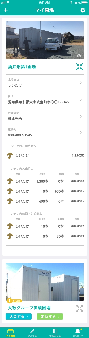 Dnote栽培手帳ではいくつでも圃場の登録が可能なため、品種はもちろんのこと圃場毎の在庫管理が容易となります。